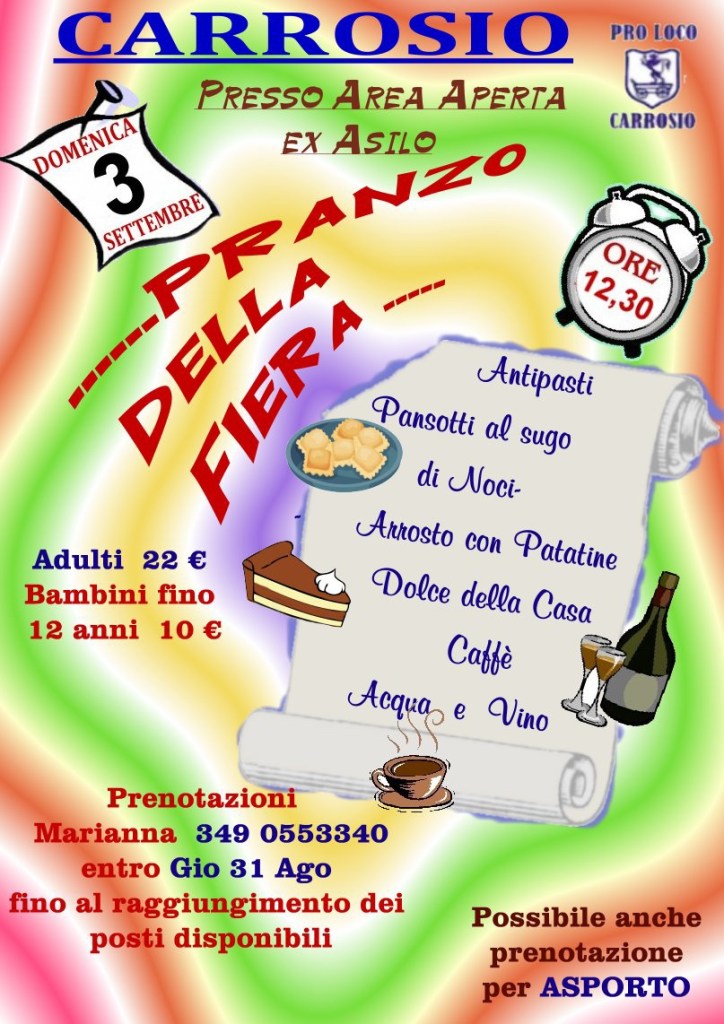 PRANZO DELLA FIERA SU PRENOTAZIONE!!!