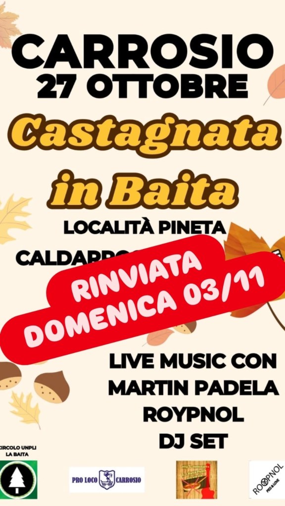 CASTAGNATA RINVIATA A DOMENICA 3 NOVEMBRE A CAUSA MAL TEMPO🌧️